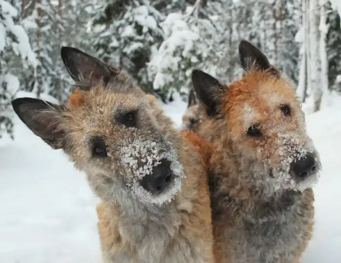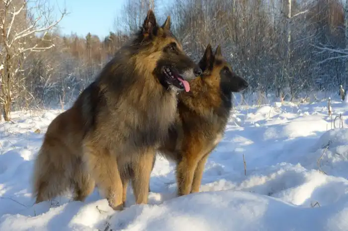 Тервюрен — длинношёрстные собаки палевого и серого окрасов. Как и у лакенуа, густая двойная шуба позволяет барбосам легко переносить непогоду, однако шерсть требует куда больше ухода. Если регулярно не чесать тервюрена, собака превратится в один ходячий колтун.