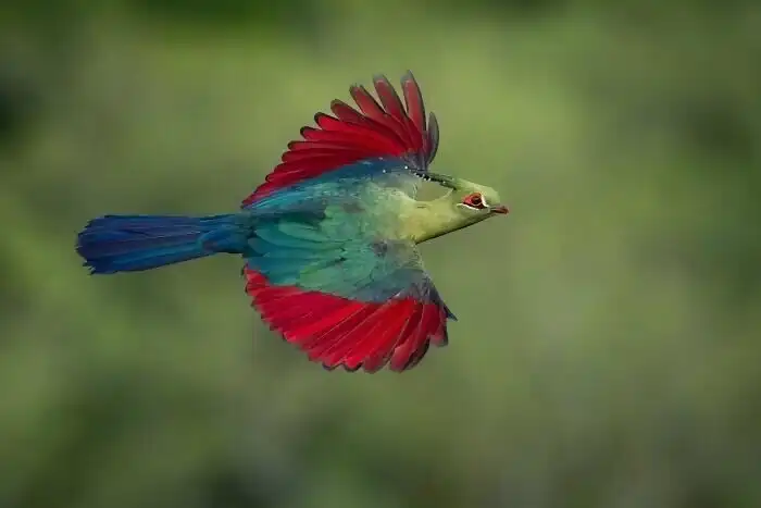 Таурако шалови в полете. Фотограф Aaron Baggenstos
