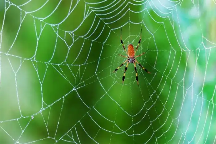 Даже одна паутинка — это маленькое торжество молекулярной биологии. Это длинная белковая нить, собранная из кучи хитро соединённых друг с другом белков поменьше. По характеристикам она не уступает современным композитным материалам. Паучьи тенёта в 6 раз легче высококачественной легированной стали и в 5 раз прочнее. А ещё они способны к небольшому саморемонту. Под воздействием воды провисший паучий шёлк снова сжимается, возвращая былую упругость.