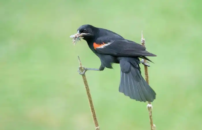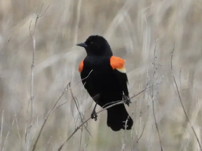Зато трупиалов сложно перепутать с кем-либо еще. Сплошь черные самцы с ярко-красными эполетами на крыльях — априори птицы заметные. Самочки, правда, такой раскраской похвастаться не могут и довольствуются скромной бурой в крапинку маскировкой.
