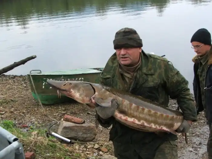 Порог на реке: *стоит никого не трогает*. Осетр во время нереста: