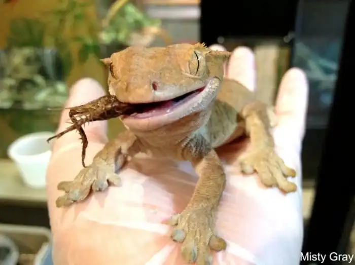 Но ни одна из вышеперечисленных приспособ не спасает рептилий от огненных муравьёв. Эти членистоногие не просто отжимают у геккона еду, ящерка сама нередко становится обедом муравьёв — настолько они лютые. При том, что сами реснитчатые гекконы в плане еды довольно пластичны: они и червячком закусят, и фруктами, и даже цветочным нектаром не брезгуют. А ввиду своей маленькости во время еды гекконы помогают растениям размножаться: ползая от цветка к цветку, он переносит пыльцу. Этакая чешуйчатая пчёлка.