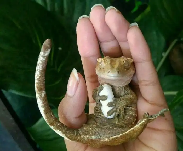 Через месяц после любовных утех самка отложит два яйца и забудет о материнстве ещё на месяц, пока не созреет вторая партия. Так, без участия отца, может появиться на свет как минимум 4 детёныша. Малыши будут развиваться под скорлупой около 60-150 дней — такой большой разбег в сроках зависит от температуры и влажности окружающей среды. Пол будущих геккончиков также зависит от обстановки — чем выше температура, тем больше шансов на вылупление самцов, а прохладная погода увеличивает поголовье самок.