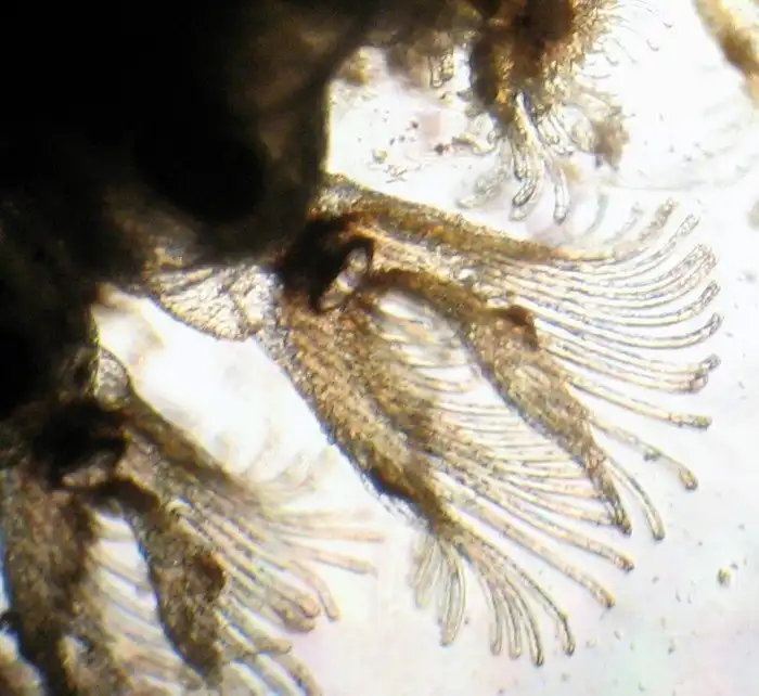 Второй вариант выглядит логичней: вместе с пресной водой мшанка проникнет куда угодно. Ведь комок слизи с голову ребёнка — это колония из тысяч мелких организмов. Каждый отдельный организм называется зооидом, его длина не превышает 2 мм. Это не самые сложные животные, они выглядят как мешочки, на вершинах которых располагается от 50 до 80 щупалец. Одиночная великолепная мшанка умеет всего две вещи: кушать и размножаться. Но и то, и другое она делает на высшем уровне.