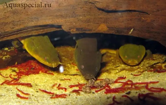 Кстати, пируэты ужа каламоихт пародирует крайне правдоподобно. Чешуя, вытянутое тело длиной до 90 сантиметров. Даже голова напоминает таблоид какого-нибудь питона. Ни дать ни взять — обожравшаяся змеюка! Истинную природу выдают лишь плавники — махонький хвостовой и мясистые грудные. Ими, кстати, рыбина помогает себе в путешествии по суше.