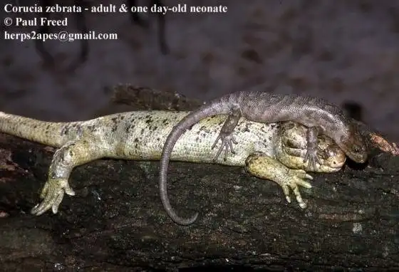 Цепкохвостые сцинки — живородящие животные. Их предки отказались от яиц и самостоятельно разработали плаценту. Она серьёзно отличается от плаценты млекопитающих, но тонкости строения мы оставим эмбриологам. Для нас важно другое: их срок беременности почти равен человеческому — он длится от 6 до 9 месяцев.
