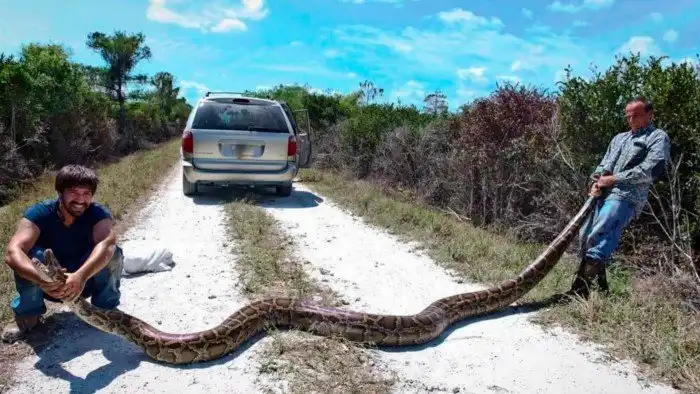 Сетчатый питон – самая длинная змeя в мире. Средняя длина этой рeптилии крайне редко достигает 5 метров. А её масса обычно не превышает 75 кг. Однако некоторые питоны вырастают и до 7 метров. А ещё есть сведения об экземплярах, которые вымахали до 9 и даже 12 метров!