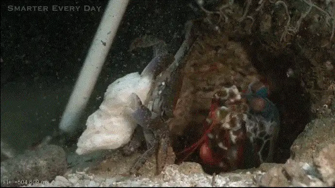 В чём же секрет супер удара? В щёлкающем механизме. Нет, это не тогда, когда щёлкают колени. Эта специальная штука делает так, что руки рака не двигаются, пока в них не наберётся достаточно силы. А когда сокращение мышц становится максимальным, механизм спускает всю накопившуюся мощь на удар, как курок.