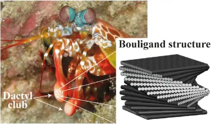 Каждая хитиновая чешуйка на лапках располагается друг относительно друга по спирали. Такая структура называется геликоидальной. Казалось бы — мелочь. Но эксперименты показали, что такое покрытие на 45% прочнее обычного, где волокна выложены слой за слоем. А всё потому, что спиралевидная структура рассеивает энергию. Отдача не бьёт напрямик, а постоянно перенаправляется, отчего теряет свою разрушительную мощь.