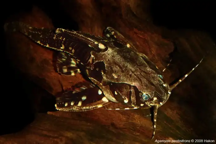 На наших привычных сомов амазонские рыбки похожи разве что усами. На передней части тушки говоруна располагаются защитные костные пластины, а по всей поверхности растут продольные ряды коротких и длинных шипов — не ядовитых, но очень острых. Спинной и грудные плавники также украшены колючками. Такой неформальный прикид отбивает у хищников аппетит, но зато очень нравится некоторым аквариумистам. Учёные открыли агамиксов в далёком 1870 году, но сомы и по сей день не теряют популярности в качестве домашних питомцев.