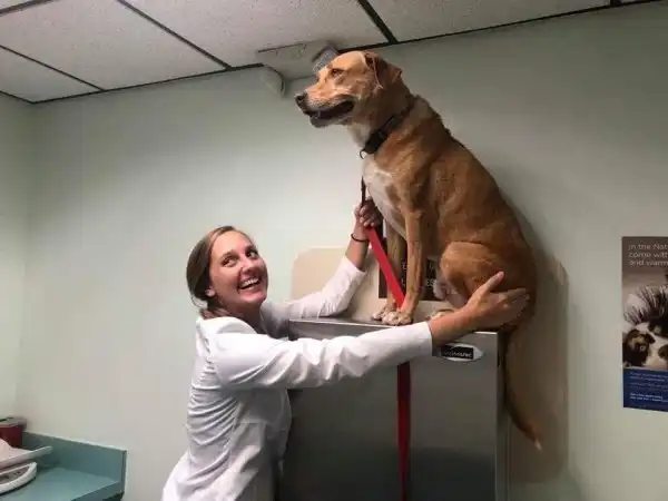 Пёс моей тёти немного поддался панике в кабинете у ветеринара