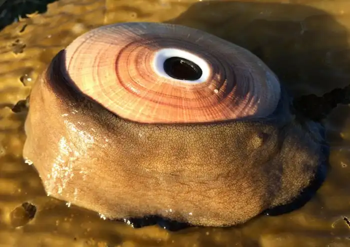 Кроме названия у гигантской замочной скважины, на первый взгляд, нет ничего интересного. Главная особенность, которая отличает его от других моллюсков, заключается в раковине. Вместо нормальной бронированной квартиры наш герой заимел односторонний панцирь размером с ладонь, под которым он и прячет склизкое бесформенное тельце.
