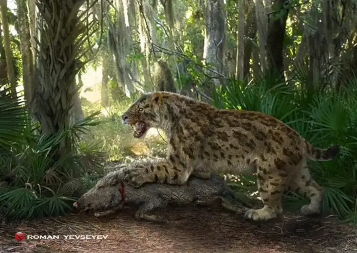 Ксеносмил наводил ужас на территории будущей Флориды, США, примерно 3-1 млн лет назад, в плейстоцене. А бояться было чего. При длине в 2 метра и ростом в 105 см., кошара весил до 300 кг. Это размеры крупного бурого мишки.
