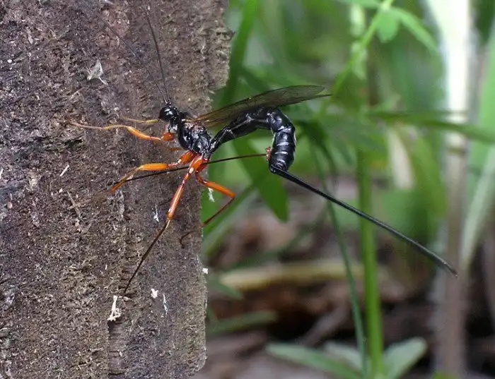 Это рисса, оса-наездница, которая откладывает яйца в личинок усачей, паразитов деревьев.