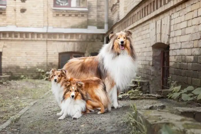 Это не мама с щенками, а взрослая собака породы колли и пара собачек породы шелти.