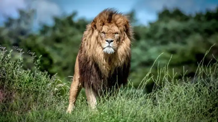 Лев – самый знаменитый обитатель Чёрного континента. Это большая, свирепая кошка, которая полновластно хозяйничает в африканской саванне. Средняя длина тела взрослого самца обычно не превышает 250 см. Хотя бывает, что львы вырастают и до 3 метров.