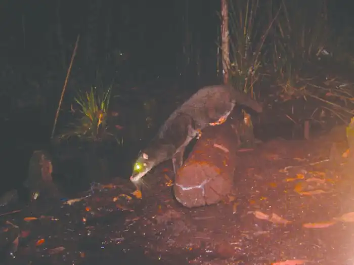 С последним приходится особенно туго: шустрая живность с легкостью уходит от неумелого пловца. Чтобы не опростоволоситься и, что более важно, не откинуть свои слабенькие ласты от голода, циветта переключилась на ночную охоту и менее резвую дичь — членистоногих и моллюсков. К тому же она освоила технику подводной засады: аки крокодил животина залегает на мелководье, высунув наружу только нос, в ожидании неосторожной жертвы. В ловушку попадаются некрупные животные и птицы, приходящие на водопой.