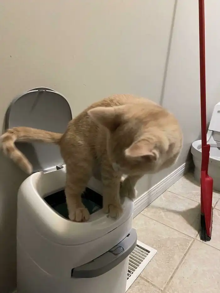 "Мой кот насмотрелся, как я каждый раз выбрасываю содержимое его лотка в мусорку. Однажды он решил облегчить мне работу.."