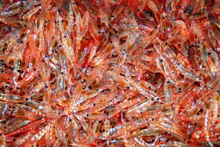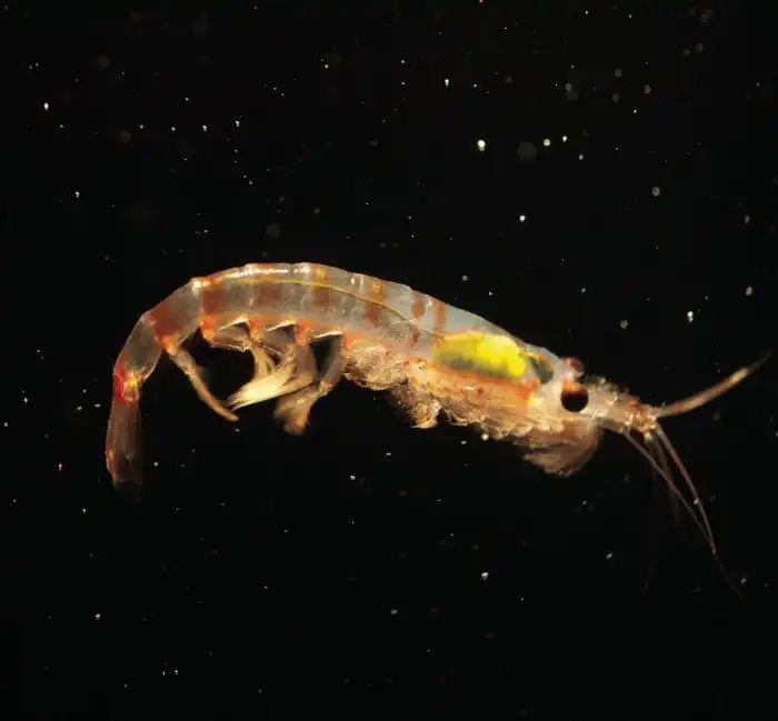 Численность членистоногих не особо падает даже зимой, когда солнце забивает на свои должностные обязанности и уходит в отпуск на полгода. А вот масса рачков уменьшается сильно. Все как одна креветки уменьшаются в размерах — всё то, что они наели, перерабатывается в тепло и энергию. Сурово, но иначе долгую зиму не пережить.