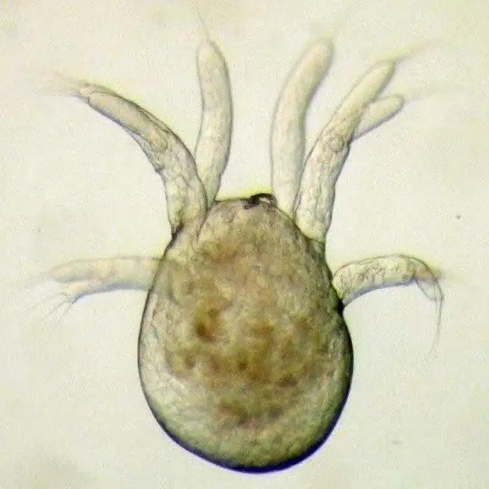 Видите зелёненькое? Это водоросли в пищеварительной системе. Рачок обожрался по самое не могу.