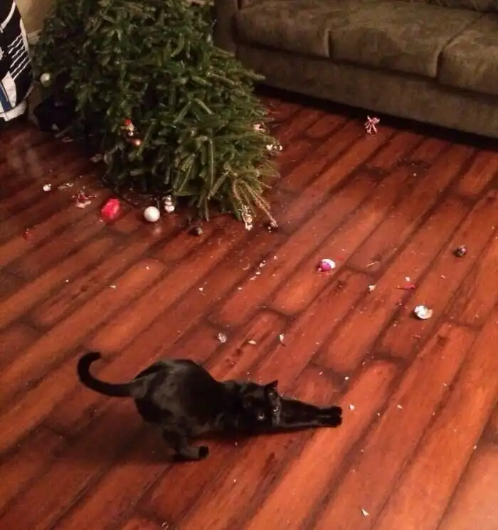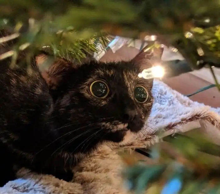 Кот вместо новогодней ёлки