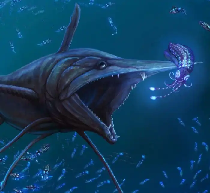 «Древняя барракуда» очень похожа на современных рыб: марлина, рыбу-меч, рыбу-парусник. Это объясняется не простым совпадением, а конвергентной эволюцией. Хочешь быстро плавать и догонять шуструю рыбку — отрасти нос, сплющи тело, обзаведись дополнительными плавниками. Но протосфирены не оставили потомков, ведь их судьбу решил метеорит. Тот самый, что упокоил нептичьих динозавров.