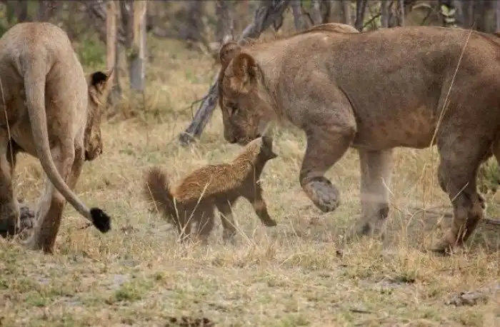 Поэтому даже отважные львы предпочитают обходить злобного зверька стороной, выслеживая добычу попроще.