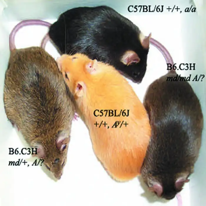 Начнём с того, что лабораторные мышки могут быть вообще любого цвета. Белые, чёрные, коричневые или разноцветные, это не так важно. Главное — к какой генетической линии они принадлежат. Генетическая (или же чистая) линия — это группа лабораторных животных, которые обладают практически идентичными генами. Их выводят специально, чтобы повысить точность и достоверность исследований. На сегодняшний день существует более 400 генетических линий мышей!