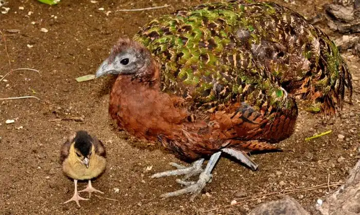 В защиту птахи скажу, что сам по себе павлин из Конго не так уж невзрачен. Шею самцов украшают насыщенно-синие перья и красная кожа, а спину и крылья — элегантные темно-зеленые. Да, у него нет затейливого веера на гузке, зато на макушке торчит прическа под кодовым названием «взрыв на макаронной фабрике». Самочки по традиции маскируются буро-зеленым окрасом, имитируя кучу мха на ножках.