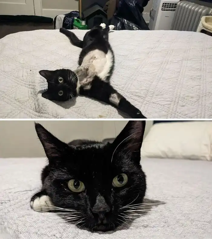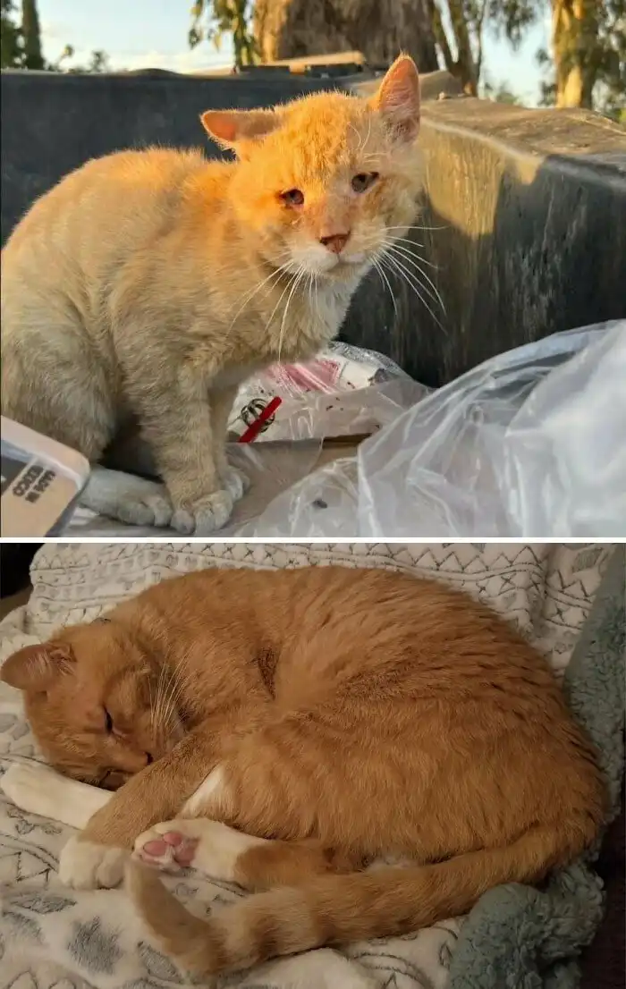 Бродячего кота нашли в мусорном баке возле магазина.. Теперь у него есть дом!