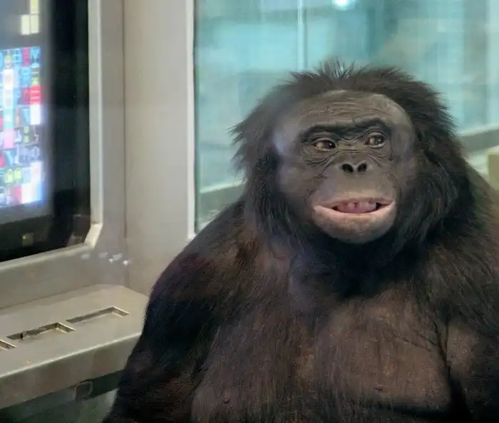 Канзи жив до сих пор, ему 42 года. И его лексический запас огромен! В 2006 исследователи утверждали, что он понимает около 3000 слов, знает несколько сотен лексиграмм и несколько жестов, которые он освоил самостоятельно. И все эти символы и жесты он прекрасно комбинирует друг с другом.