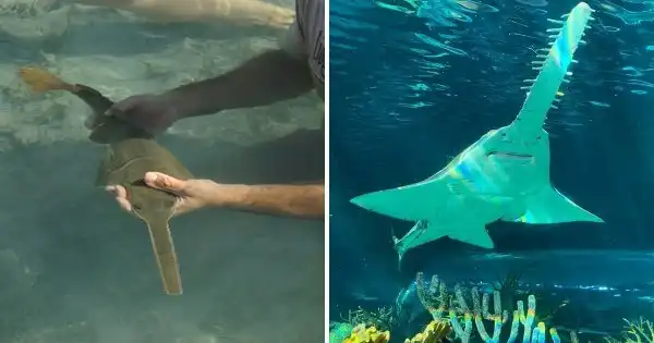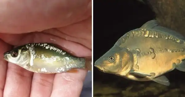 На фото показана рыбка, которая появилась на свет буквально несколько минут назад.