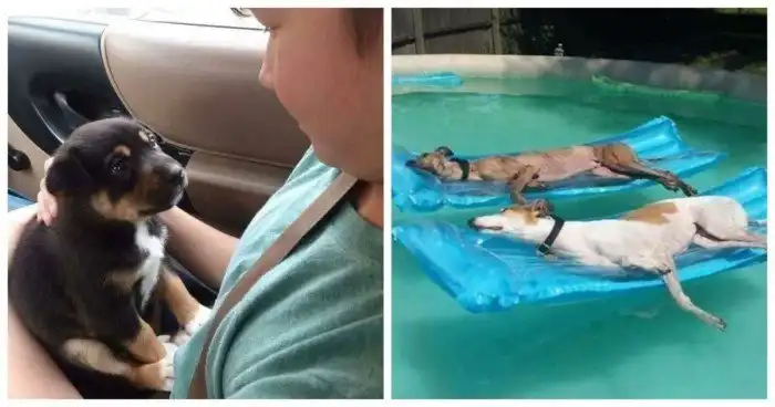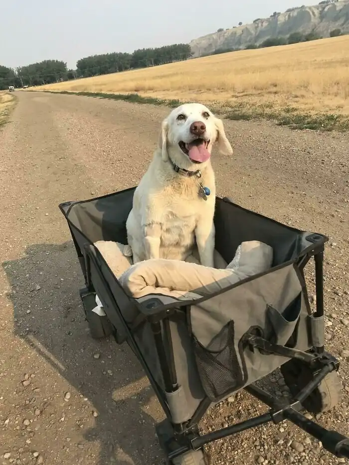 7. "Джаксу 13 лет, сейчас он не может далеко ходить, но его сердце разбилось бы, если бы мы не взяли его на прогулку"