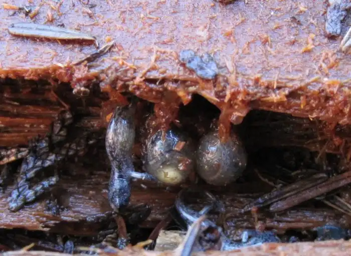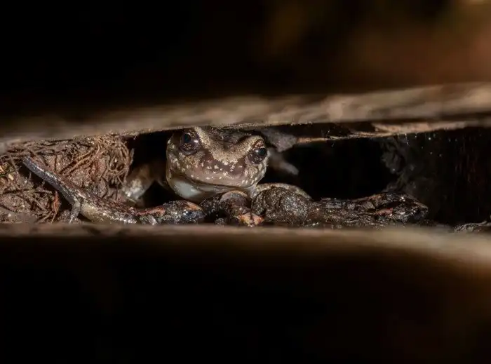 Зато весной-летом амфибия готова не только к полётам и охоте, но и к производству себе подобных. Мать приучает детей к экстриму с самого детства. Кладку из 6-9 яиц она располагает под корой полюбившегося ствола. Напомним, что все нормальные амфибии мечут икру в воду.