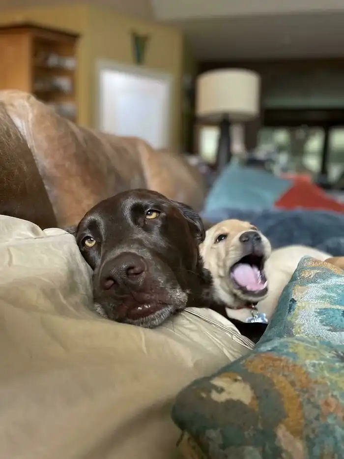 "Новый щенок у нас появился всего недели 2 назад. Но наш пёс уже устал от всего этого"