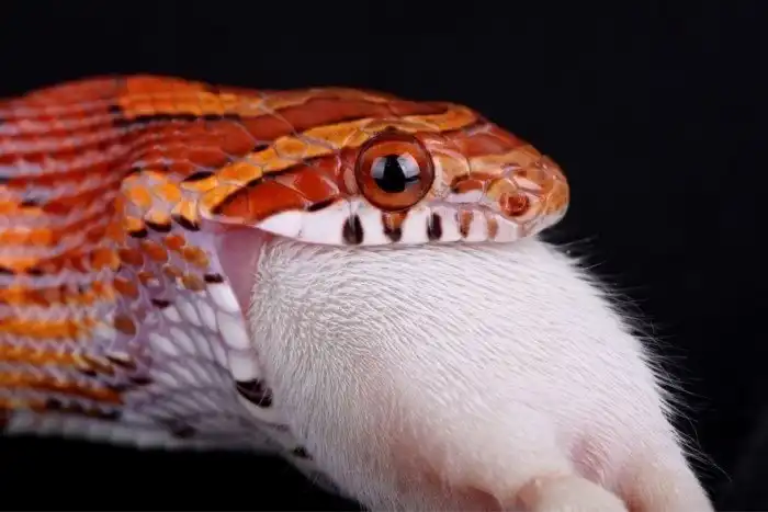 Поэтому они вынуждены проглатывать пищу целиком. Благодаря очень гибкой нижней челюсти змеи могут потребл*ть добычу на 75–100% крупнее, чем их собственная голова. Как только пища будет съедена, химические вещества в их пищеварительной системе завершат задачу по её расщеплению.