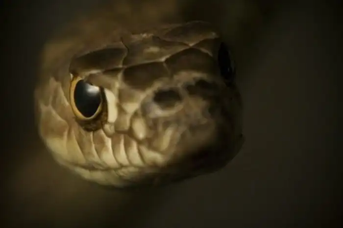 Змеи должны спать с широко открытыми глазами, так как не могут моргать. Вместо век у них тонкая мембрана, покрывающая каждый глаз и выполняющая защитную функцию.