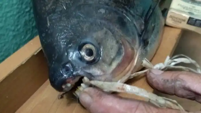 Чтобы идентифицировать добычу, люди обращались к рыбинспекторам и учёным, которые в большинстве случаев признавали в зверюгах паку — вид пресноводных рыб из семейства пираньевых. От тех самых кровожадных пираний эти рыбы отличаются миролюбивым взглядом на окружающую их фауну — паку всеядны, но предпочитают растительную пищу: фрукты, семена, орехи. На сбалансированной диете рыба вырастает до метра в длину, набирая при этом 30 килограмм веса. Так что улов у наших рыбаков был знатный!