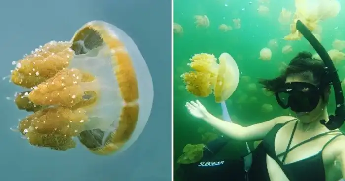 Медуза*-жаренное яйцо получила своё название благодаря комичной схожести с этим блюдом. Щупальца существа практически не жалят, поэтому дайверы часто замечают между ними много маленьких рыб, которые с удовольствием используют их в качестве укрытия.