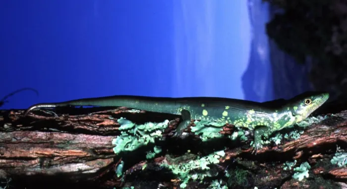 В зелёных-зелёных джунглях, на зелёной-зелёной зелени сидел зелёный зеленокровный сцинк.
