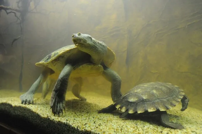 Впрочем, на родине черепахи Мэри-Ривер, в Австралии, и не такое видали. Определить дислокацию рептилии не сложно, если разбираться в местной географии и знать азы английского языка — черепашка живёт в реке Мэри, на Востоке перевёрнутого континента. Бронированная рептилия является одной из двух крупнейших черепах континента. Её панцирь достигает размеров до полуметра!