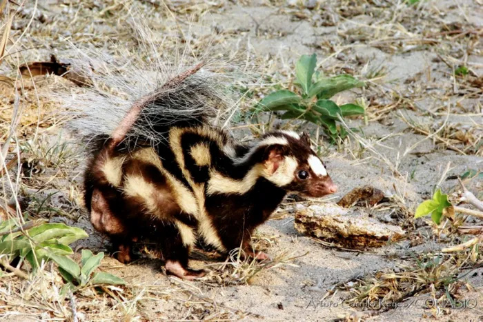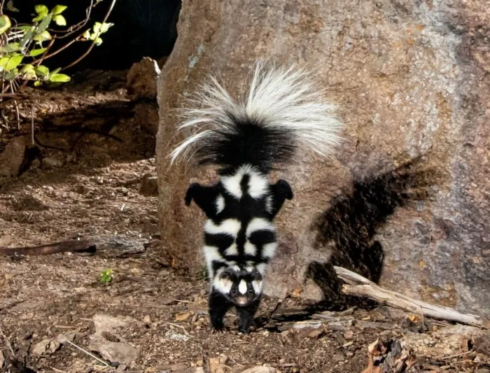 Но и тут не обошлось без нюансов: продуктивность желёз — 15 грамм жидкости в неделю, этого хватает всего на 5 залпов. Да, мощных — в 3 метровом конусе слепнет вообще всё, что смотрело на скунса, но боезапас слишком ограничен. Поэтому перед стрельбой зверь встаёт на передние лапы, это у него предупреждающая стойка такая. Выглядит нестрашно, но достаточно одного выстрела, чтобы в следующий раз ты обходил скунса десятой дорогой, когда он начнёт выполнять акробатические номера.