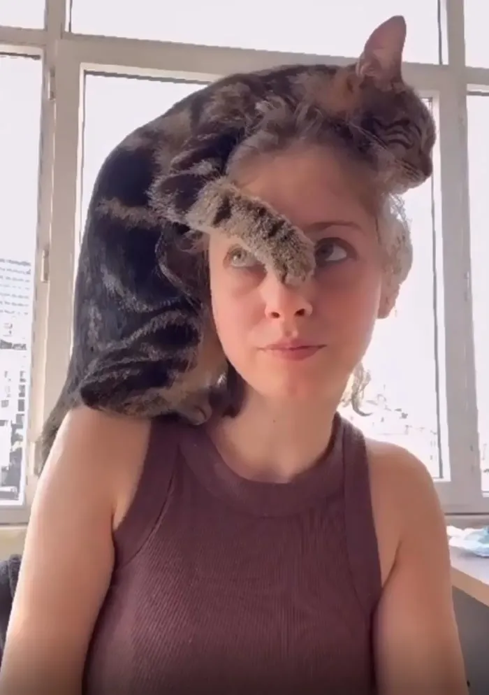"Мой кот любит, когда я заворачиваю его в бумажный пакет и таскаю по дому. Решила попробовать и на улице. Он даже не пытался убежать, а просто наслаждался видами"
