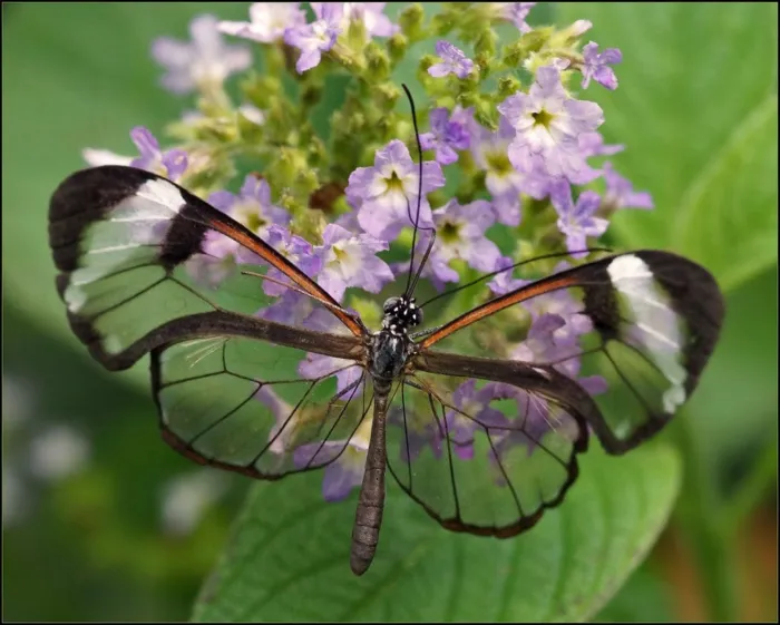 У некоторых бабочек чешуйки вырабатывают пигменты, у других — особым образом преломляют солнечный свет, у третьих — просто рассеивают лучи. Так вот, у стеклянных бабочек своя фишка: на прозрачных участках крыла вообще нет никаких чешуек! Вместо этого есть те самые хитиновые волоски, расположенные таким образом, чтобы не создавать блики.