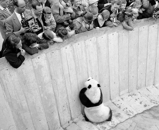 Это одна из самых известных панд — панда Чи-Чи из Лондонского зоопарка. С самого младенчества её растили люди. Поэтому во взрослом возрасте она абсолютно не знала, как вести себя с самцами. Панда так и не принесла детёнышей.