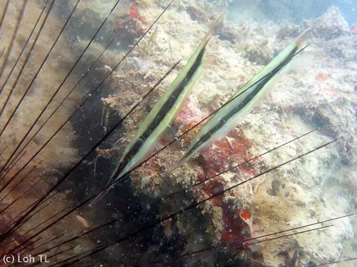 Особенно комфортно она чувствует себя среди иголок морских ежей. Тонкая и ловкая, она зависает между шипами и остаётся в полнейшей безопасности! Более того, кривохвостка не стесняется подрезать у ежей обед: питается она рачками, планктоном и прочей мелкой органикой.