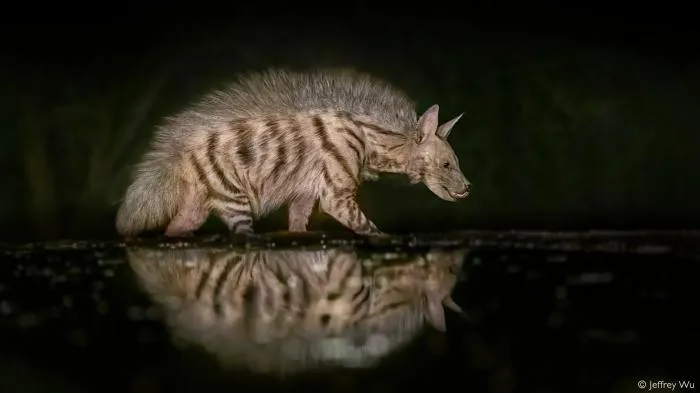 Полосатая гиена — один из четырёх ныне живущих представителей семейства гиеновых. Они значительно отличаются от привычных нам смеющихся африканских падальщиков — как внешним видом, так и поведением. Издалека животины вообще выглядят как упоротые собакозебры: 80 сантиметров в холке, полосатый принт, длинные передние лапы и максимальная фотогеничность на любом фото.