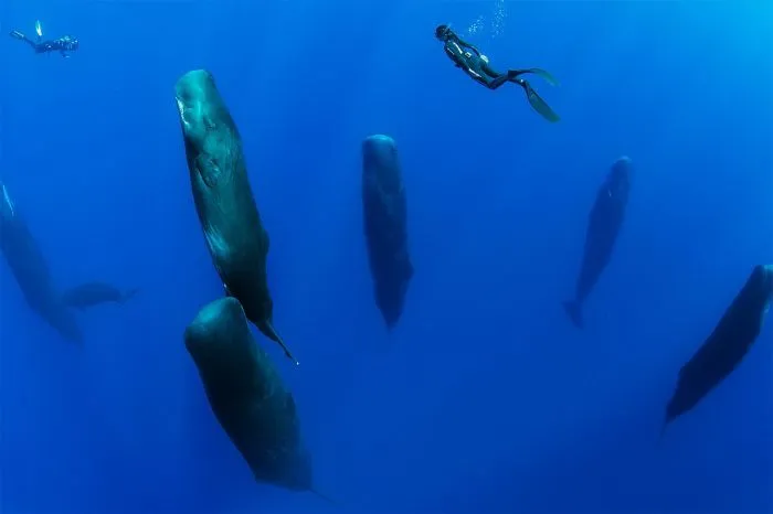 На протяжении всей жизни кашалот продолжает расти, но с возрастом рост замедляется. До сих точно неизвестно, сколько именно они живут, но самому старому зарегистрированному кашалоту было 77 лет. А вот спят они всегда только вертикально и это необычное зрелище. Во сне у кашалотов полностью отключаются оба полушария и они дремлют всего по 10-15 минут.