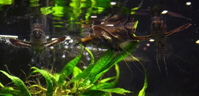 Длинные тонкие лучи плавников необходимы для "ощупывания" пространства под рыбкой.
