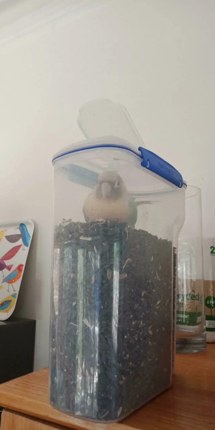 11. "Наш хитрец понял, как открывать контейнер с семечками"